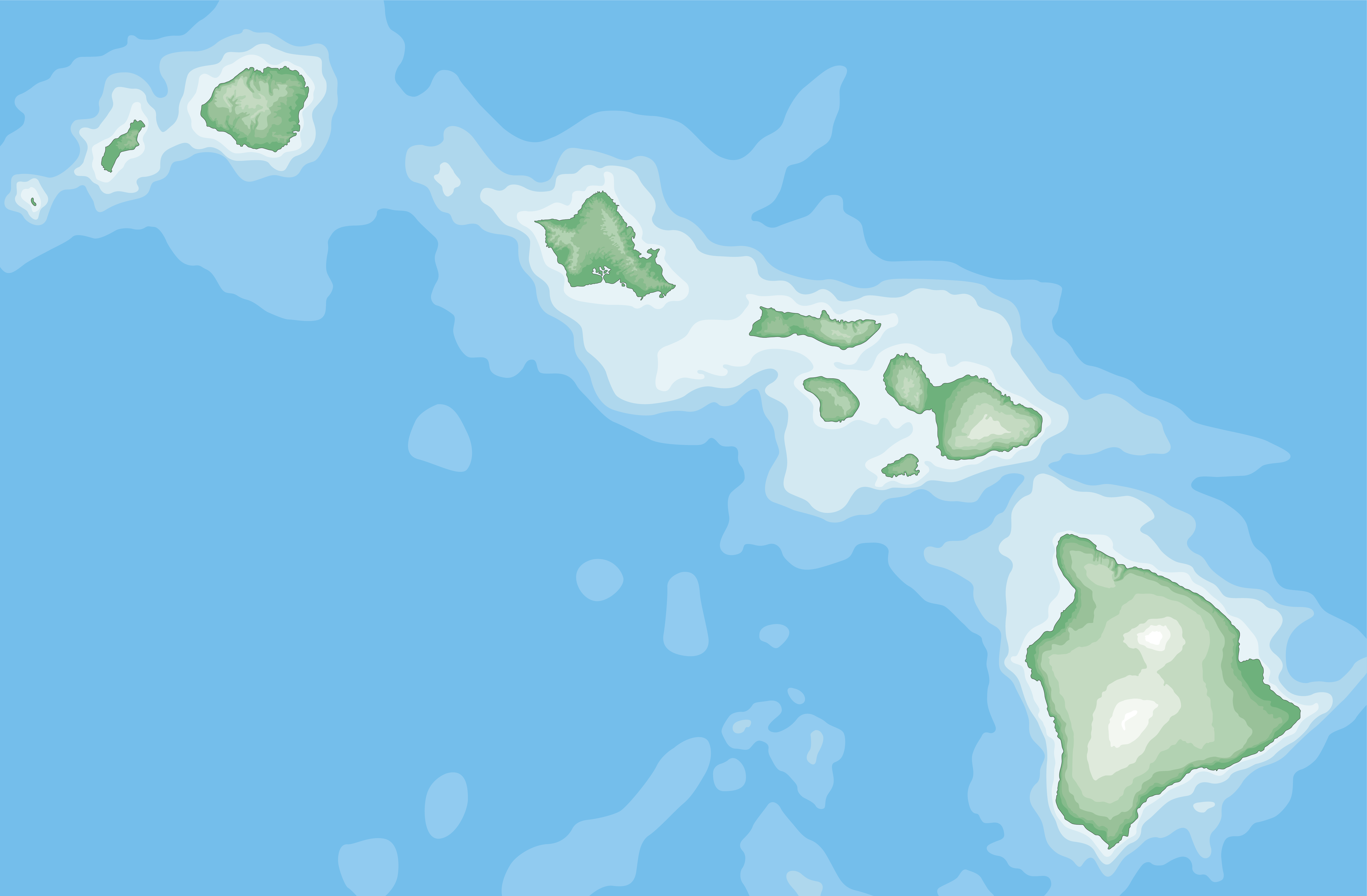 A larger version of the rendered map above (top) can be found here: Hawaiian Islands Map.